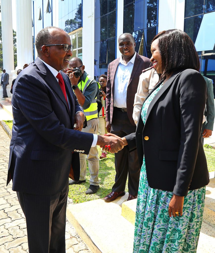 The CS who arrived in Nakuru was officially welcomed by Governor Susan Kihika, County Commissioner Loyford Kibara and MPs Samuel Arama(Nakuru West), David Gikaria(Nakuru East), Irene Njoki (Bahati) and Woman Rep Liza Chelule among other leaders.
