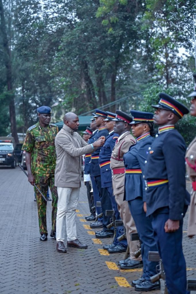 He is accompanied by Deputy Inspector General – NPS Eliud Lagat, Deputy Inspector General – APS Gilbert Masengeli, Principal Administrative Secretary Beverly Opwora, Central Regional Commissioner Joshua Nkanatha, among other senior government officials.