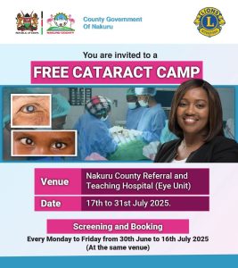 Nakuru Level 5 hospital commonly known as PGH partnered with Lions Club of Nakuru to hold a free Cataract camp in Nakuru.