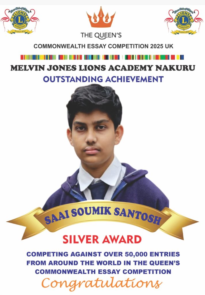Saai Soumik Santosh from Nakuru County has scooped an award in the Queen’s Commonwealth Essay Competition in UK.