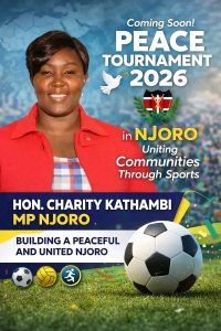 Youth in Njoro Constituency have a reason to smile after office of MP Charity Kathambi announced that Njoro Constituency Peace Tournament 2026 is coming soon.