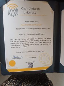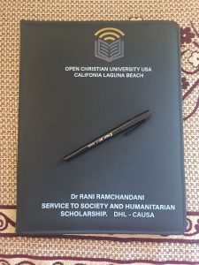 Nakuru-based philanthropist Rani Ramchandani has received Honorary Degree from Open Christian University (OCU) USA Carlifonia.