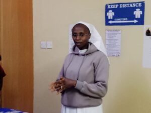 Sister Kili addressing the guests at Mother Kevin Hospital in Nakuru West. PHOTO/PRISTONE MAMBILI