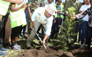 Kiogora Murithi plants a tree at a past function.PHOTO/COURTESY